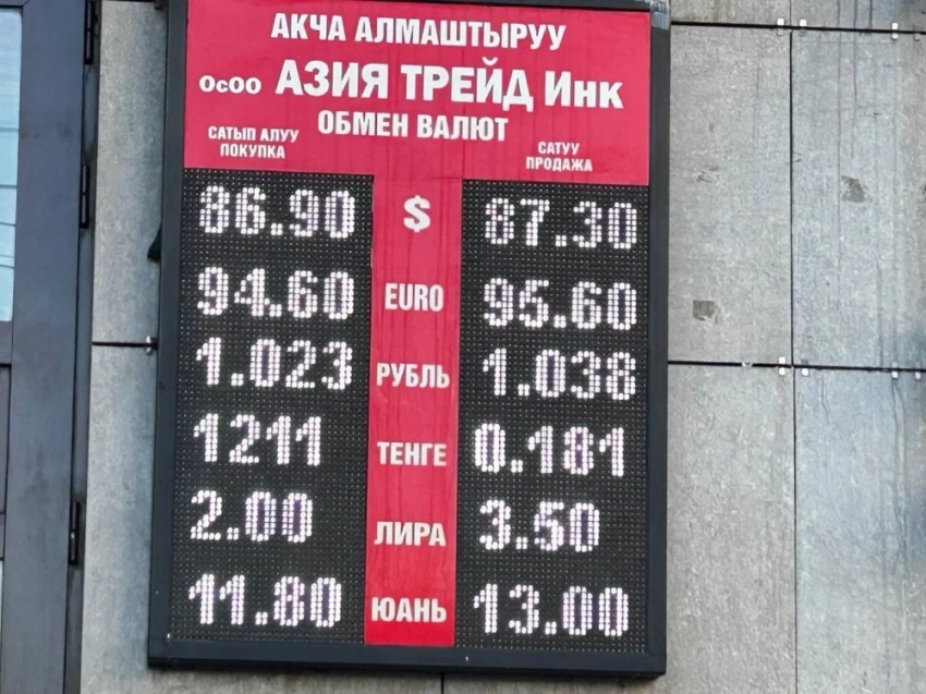 Өзгөрүүлөрдүн негизинде доллардын курсу төмөндөдү. Анын сатып алуу баасы 86,9 сом, ал эми сатуу баасы — 87,3.