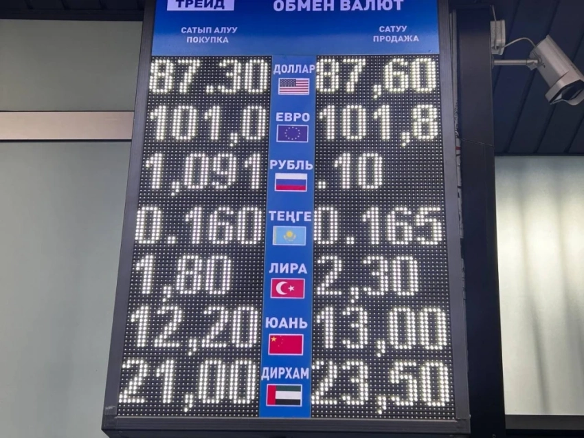 Курс доллара остается стабильным: покупка составляет 87,3 сома, а продажа — 87,6 сома.