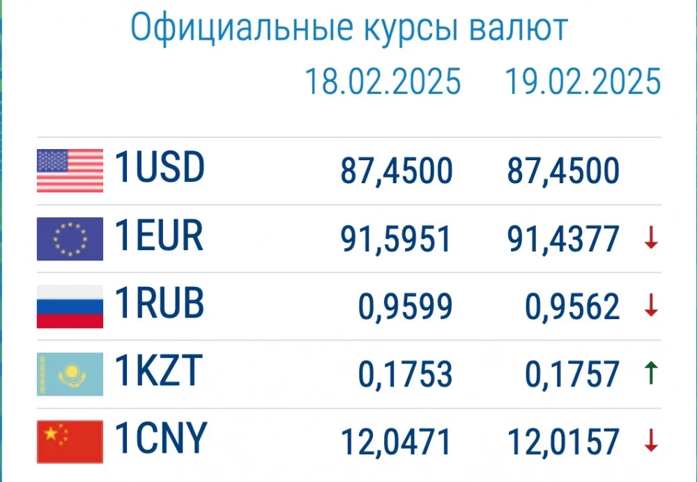Валютанын курсу коммерциялык банктарда 19-февраль: рубль жана евро кайрадан арзандап жатат