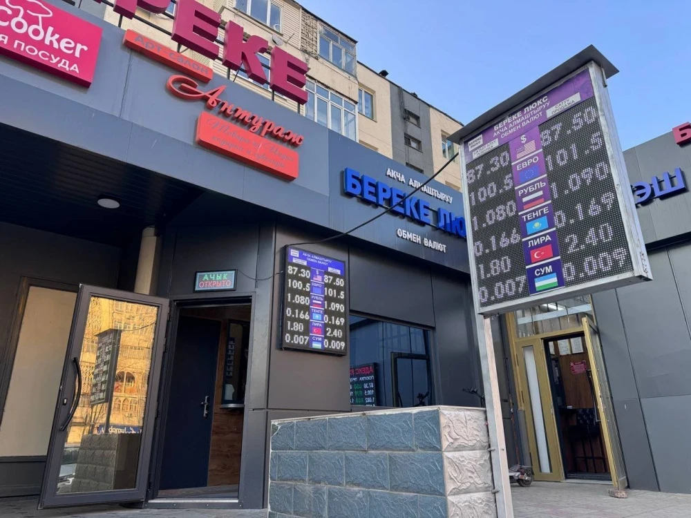 Курс покупки доллара остается на уровне 87,30 сома, в то время как цена продажи немного снизилась до 87,50.