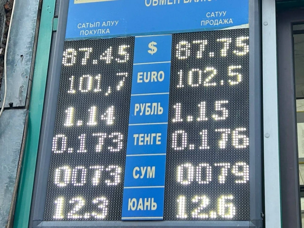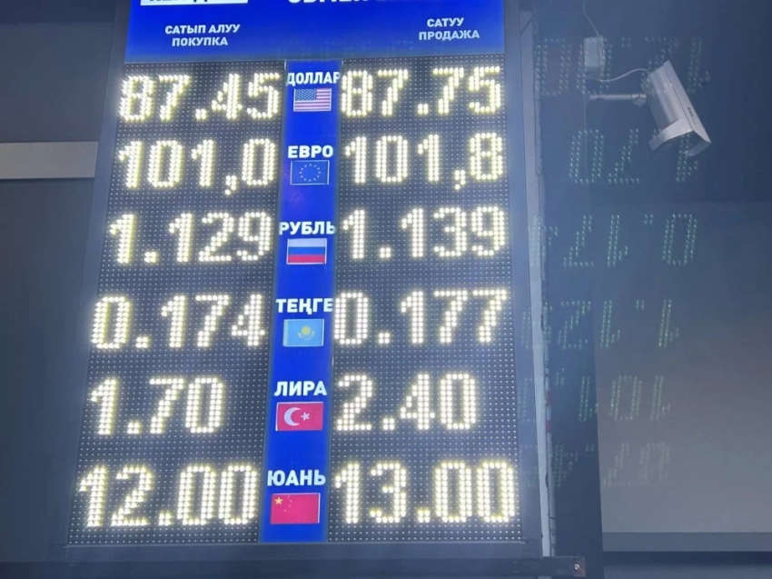 Курс доллара возрос: его покупают по 87,45 сома, а продают по 87,75.
