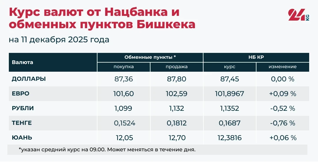 - Официальный курс от НБ КР: 87,45 сома (без изменений).