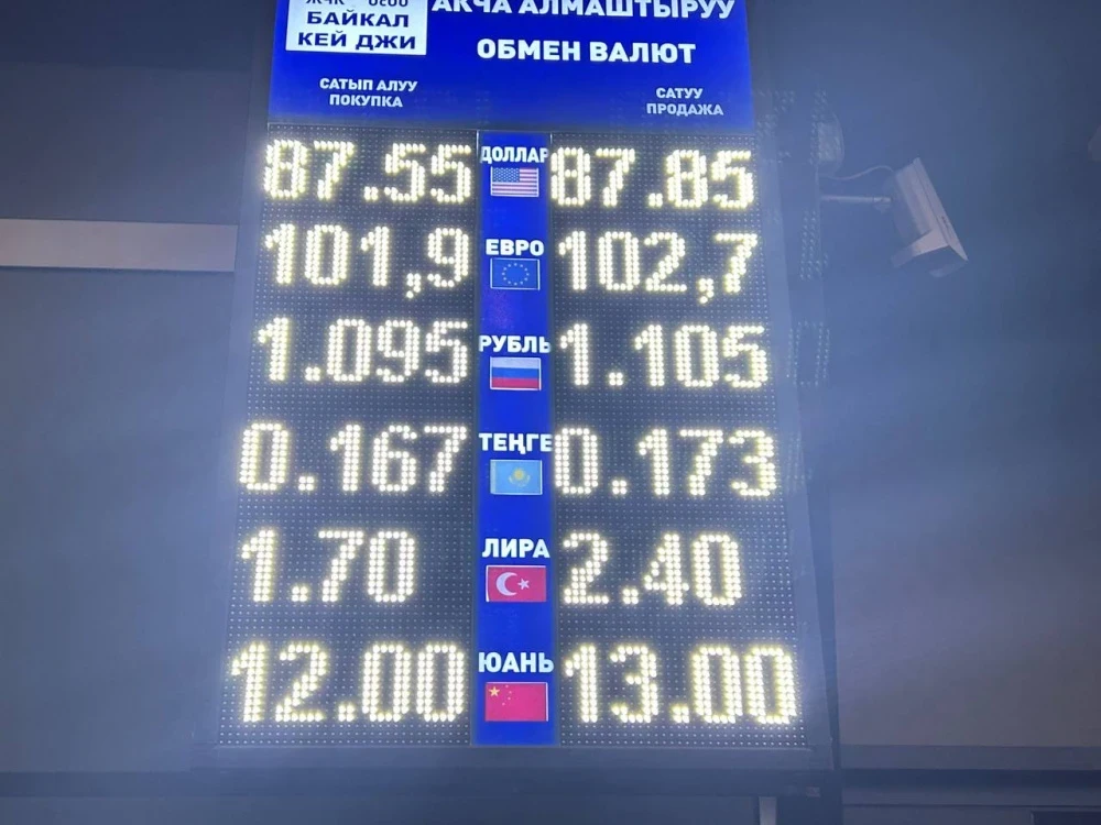 Курс доллара не изменился: его можно приобрести по 87,55 сома, а продать за 87,85.