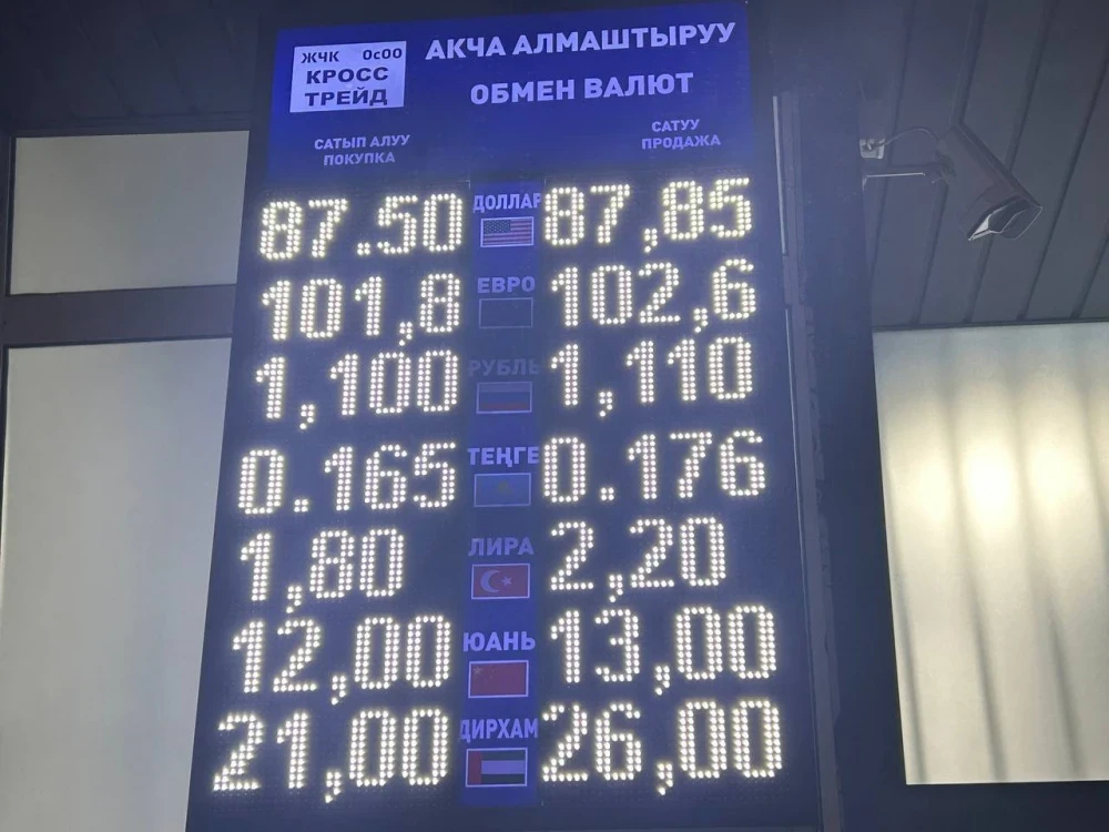 Доллар немного увеличился в цене, его покупают за 87,55 сома, а продают за 87,85.