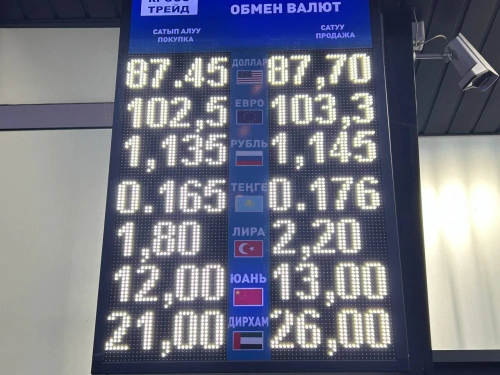 Курс доллара немного снизился: покупка составляет 87,45 сома, а продажа - 87,70 сома.