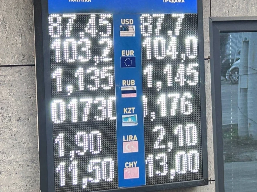 Стоимость евро немного снизилась: его покупка составляет 102,5-103,2 сома, а продажа – 103,5-104 сома.
