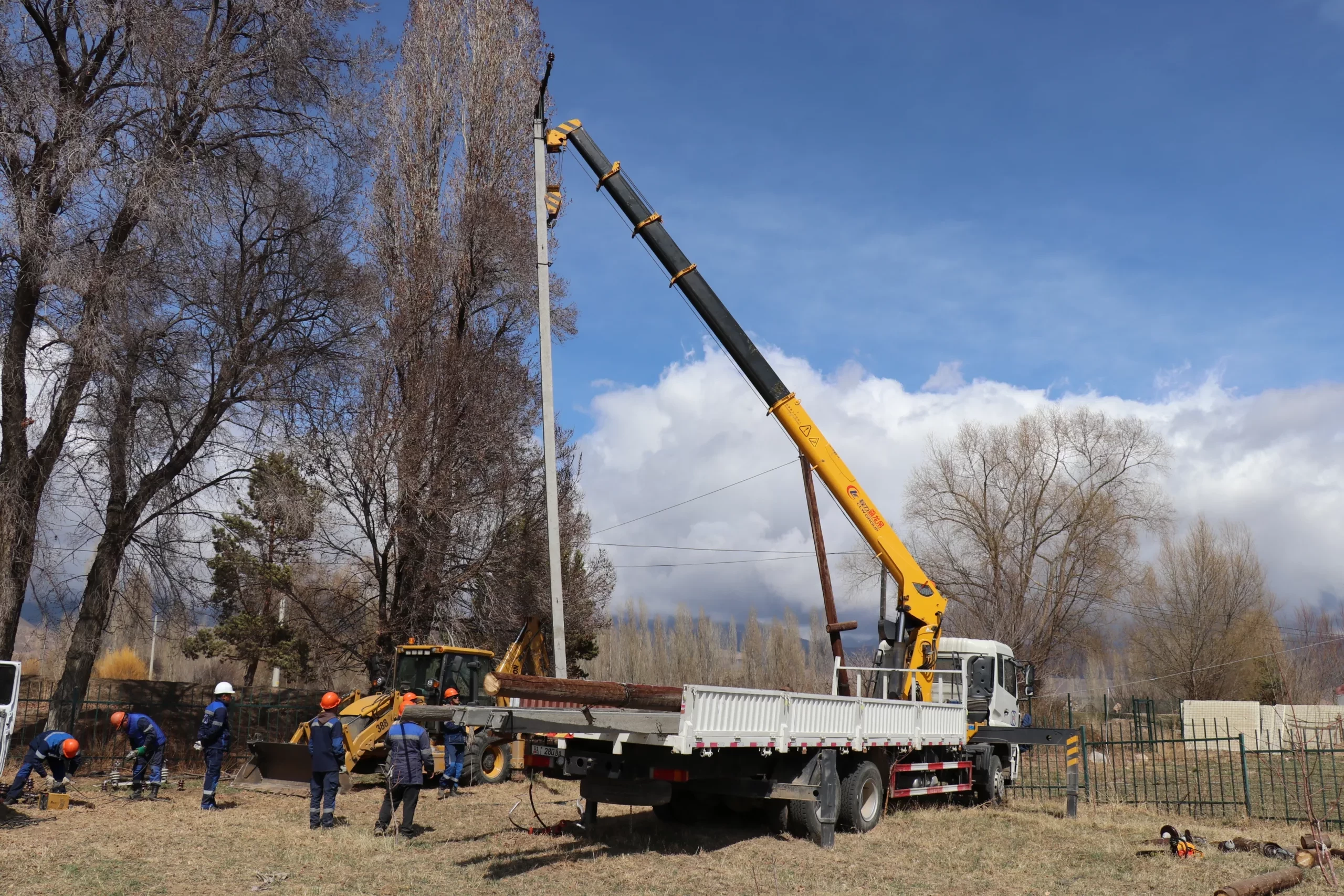 Чолпон-Ата РЭСте жыгач устундарды темир-бетон устундар менен алмаштырууда