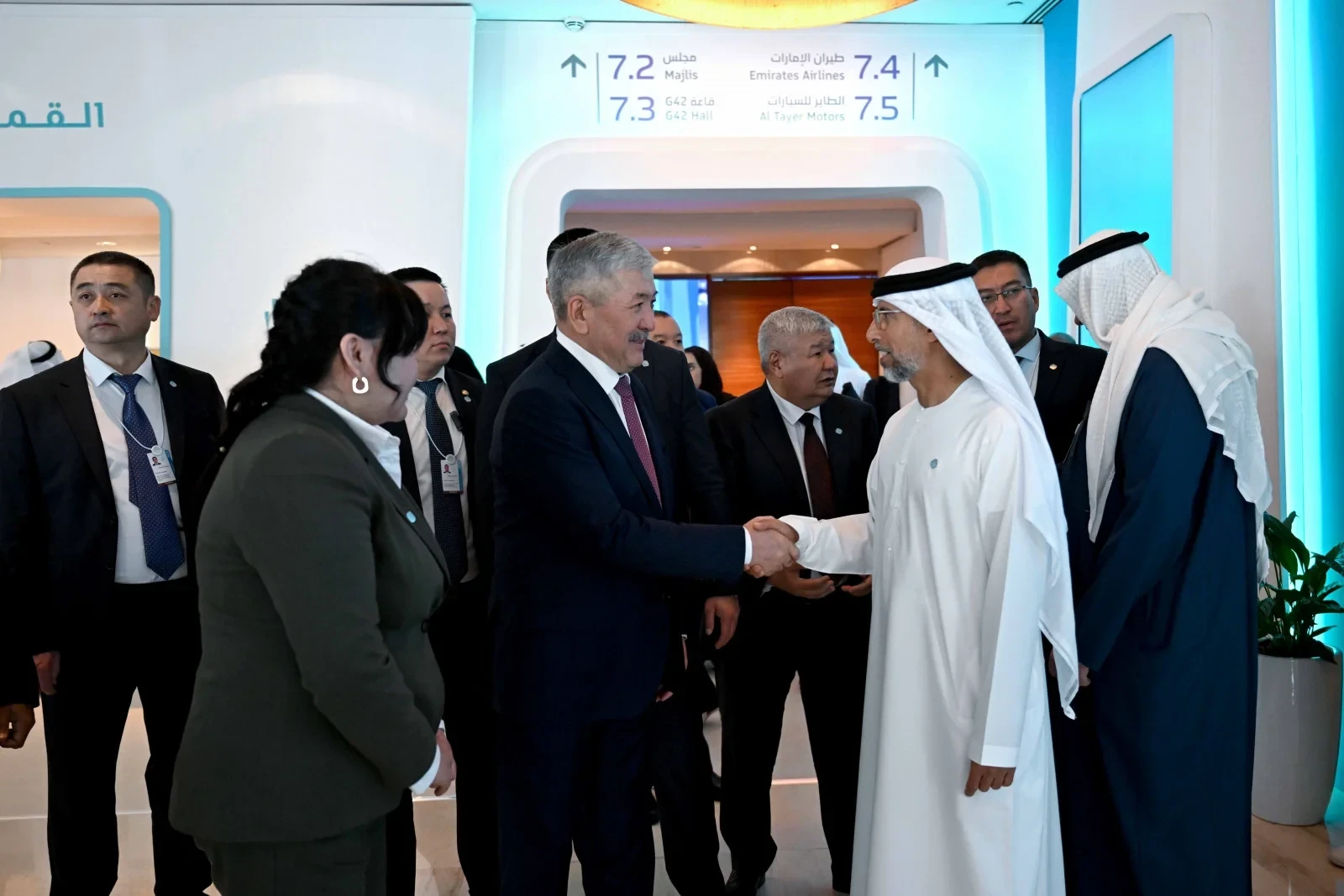 На Всемирном правительственном саммите председатель кабинета министров Кыргызстана Адылбек Касымалиев встретился с министром энергетики Объединенных Арабских Эмиратов Сухейлом Аль-Мазруи и генеральным директором компании Masdar Мохаммедом Жамиль Аль-Рамахи.