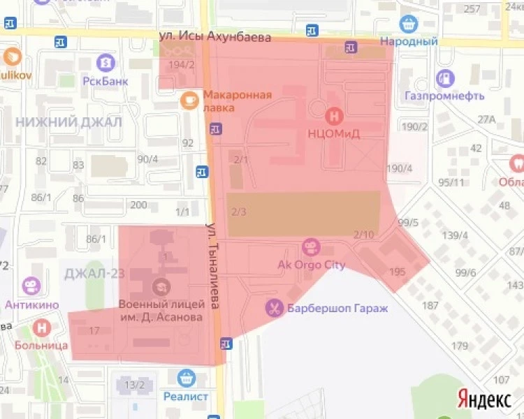Сууга чектөө кирген зона Тыналиев көчөсүнөн Минжылкий көчөсүнө чейин Ахунбаев көчөсүнүн чектерине чейин созулат.