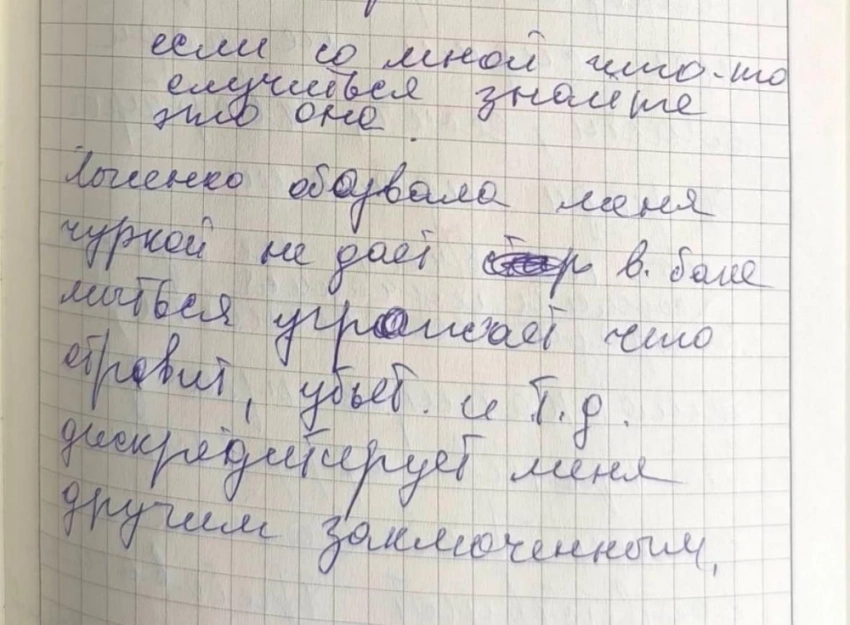 Катында Махабат: «Эгер мага бир нерсе болсо, билгиле, бул ал. Лысенко мени ч**ка деп уят кылды. Аны менен баняда жуунууга мүмкүн эмес. Менин уулумду уулоо, өлтүрүү жана башка коркутуулар жасоого убада берди. Башка соттолгондордун алдында мени жаманаты кылып жатат» — деп жазган.