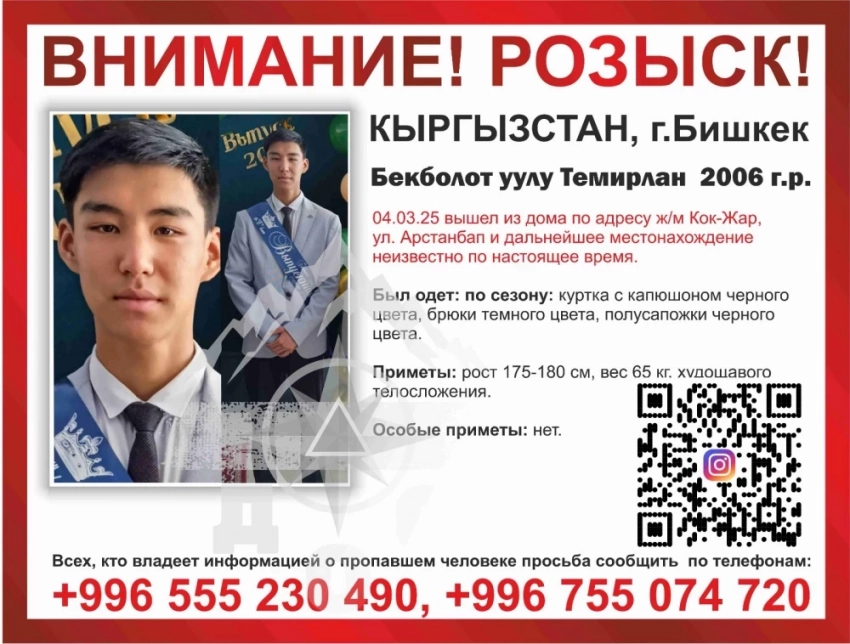 "Үйдөн чыкты, кайра кайтып келген жок". 19 жаштагы Темирланды издешет