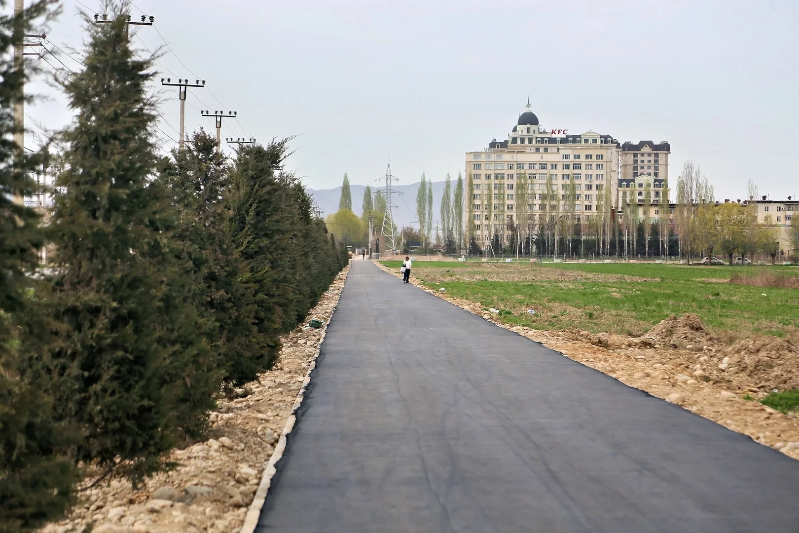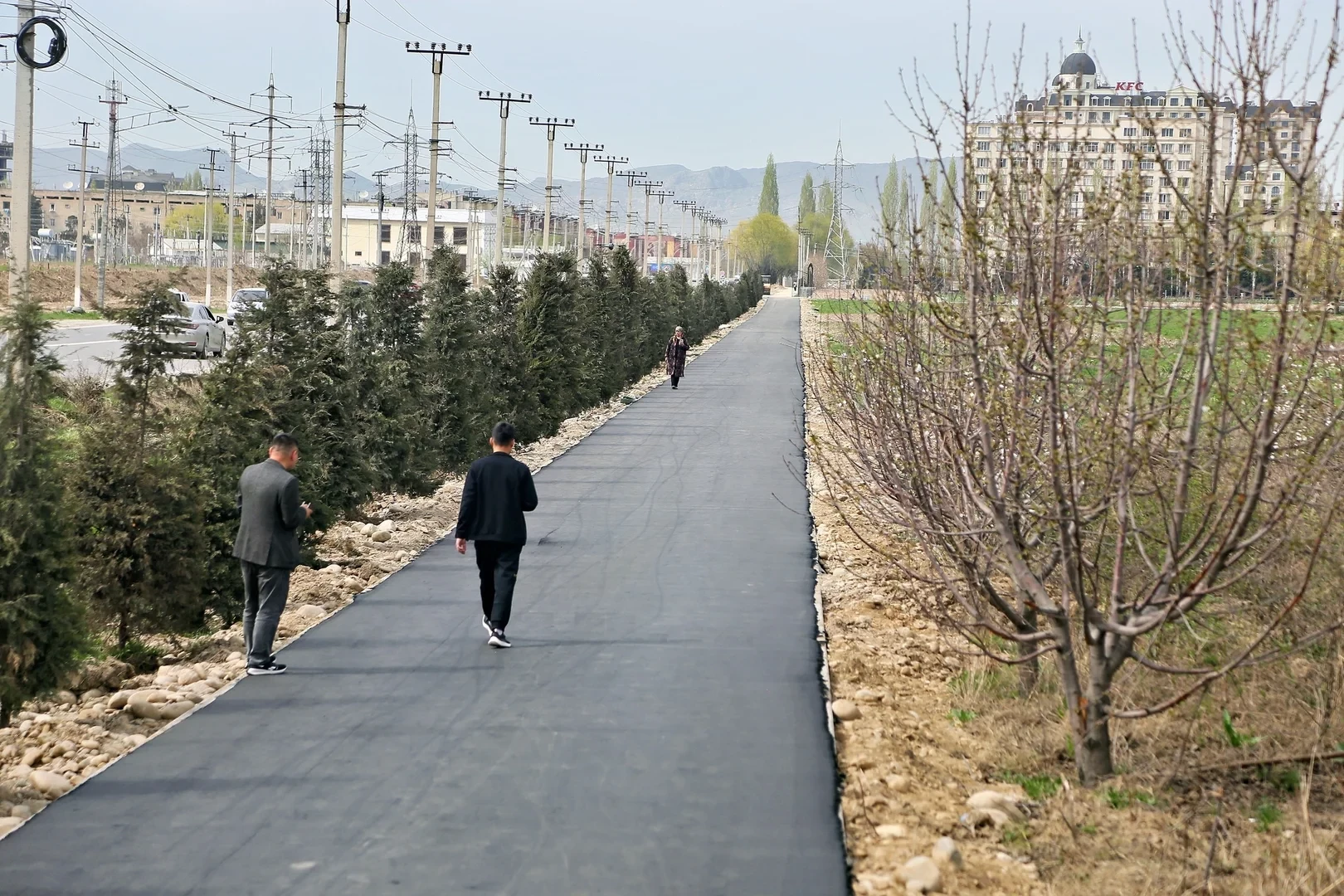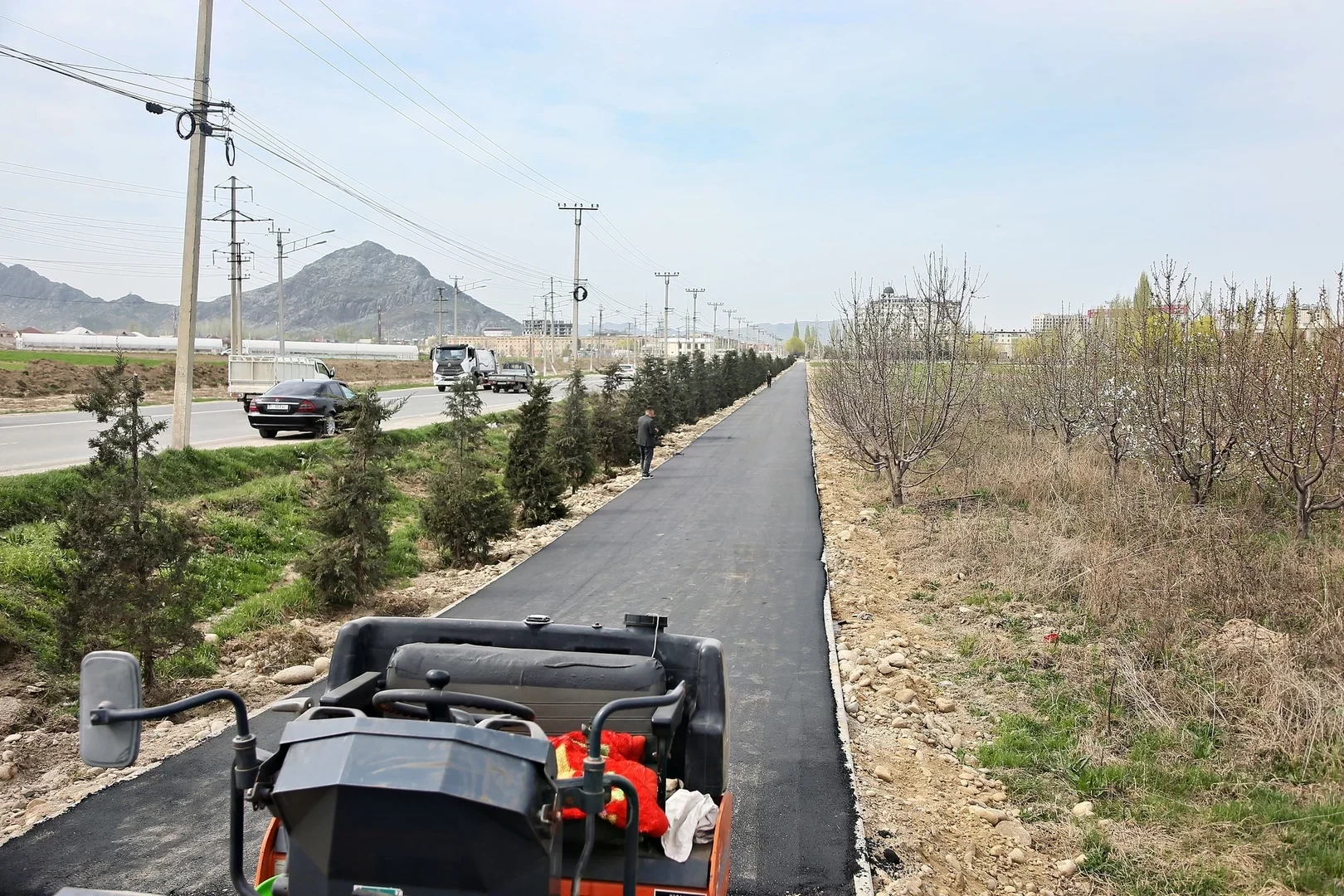 Ош шаарынын мэри Женишбек Токторбаевдин көрсөтмөсүнө ылайык, Бекмамат Осмонов көчөсүндөгү №50 Нышанов атындагы мектептен Мамырова көчөсүндөгү тегерек жолго чейин тротуар, веложол жана жашылдандыруу иштерин жүргүзүүдө.