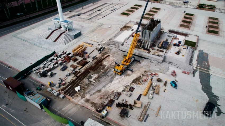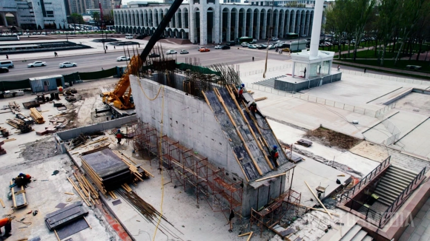 Бишкектин борборундагы "Айкөл Манас" монументинин реконструкциясы кандай өтүп жатат. Дрондун видеосу