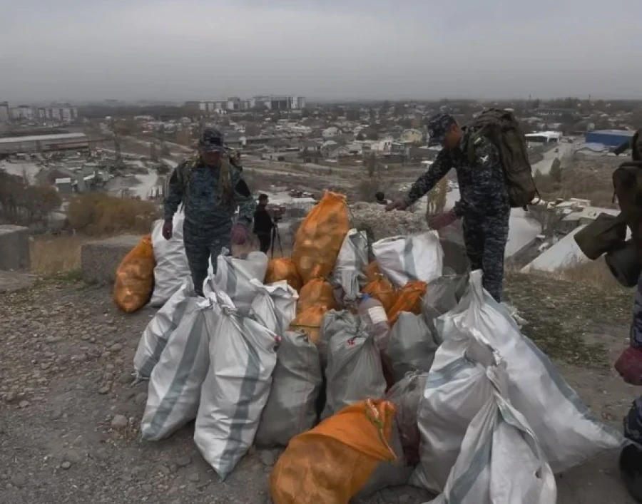 Сотрудники Управления патрульной службы милиции совместно с экологом Андреем Панаевым организовали акцию по очистке территории Панорамы в Бишкеке.
