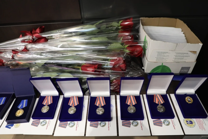 Во время мероприятия нескольким милиционерам были вручены награды от руководства спецслужбы.