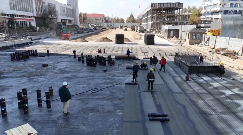 На проспекте Чуй полные бетонные работы завершены, выполнена пароизоляция, и начался этап двухслойной гидроизоляции. Ожидается, что в конце декабря проспект Чуй будет открыт для проезда.