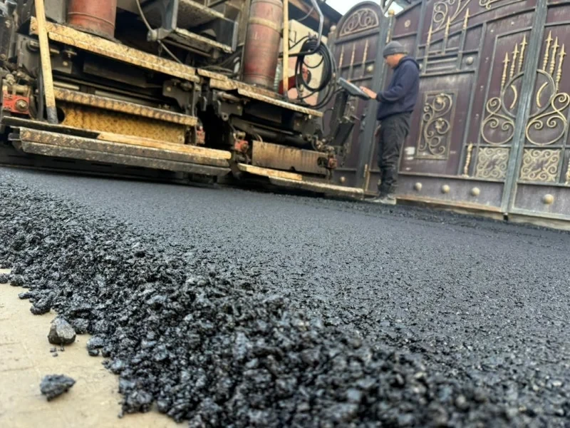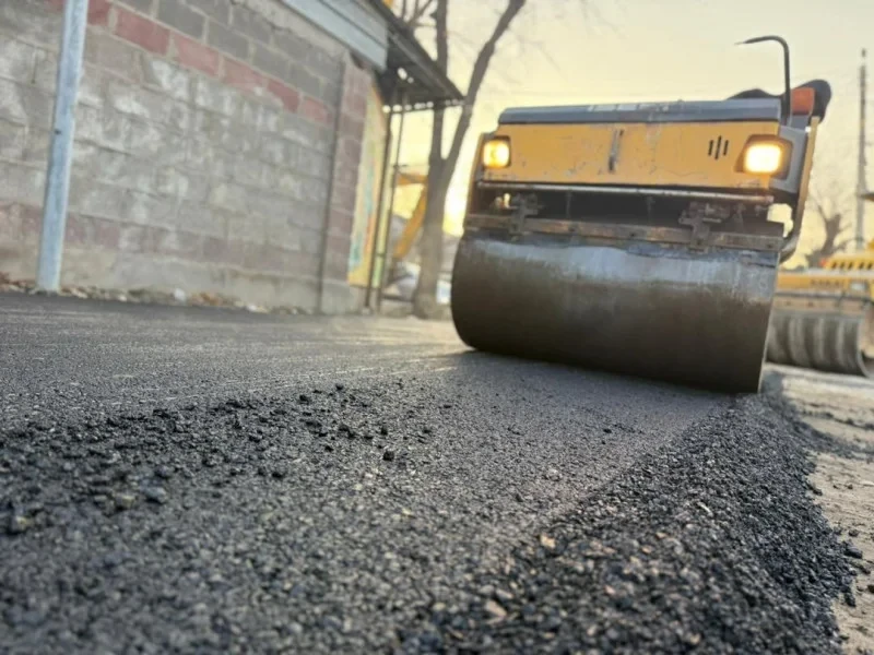 На одной из улиц Бишкека укладывают новый асфальт