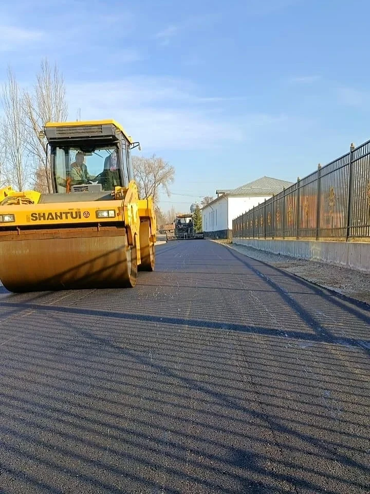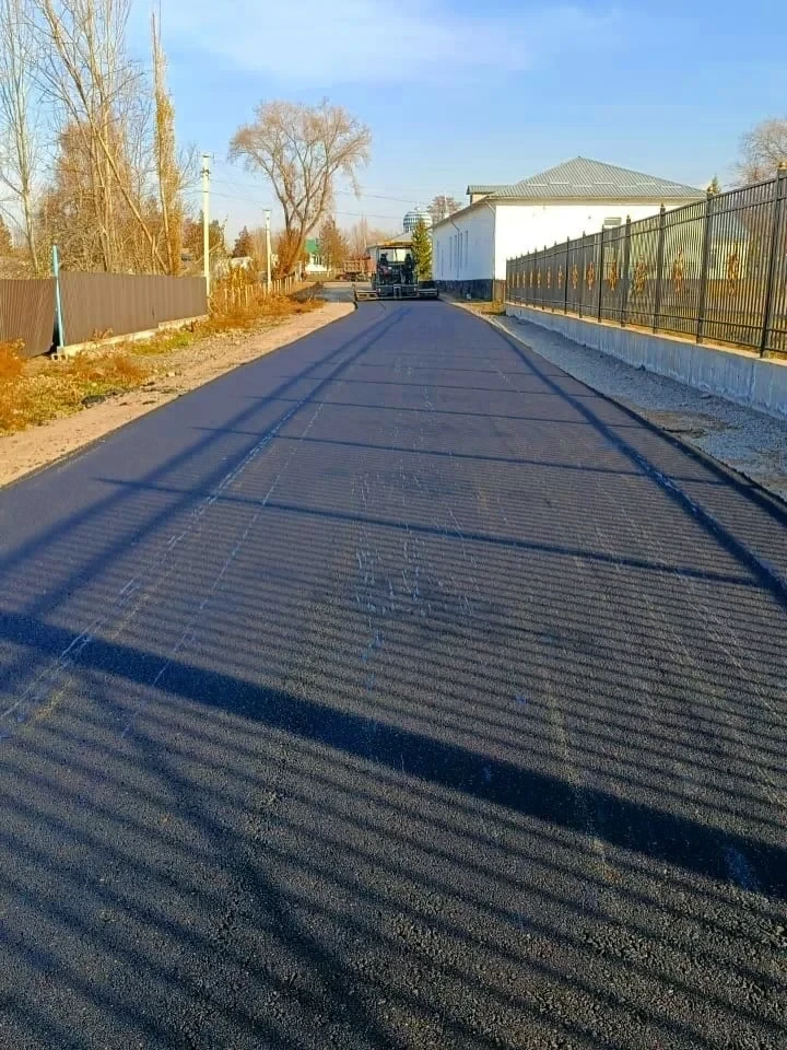 В Чуйском районе, в селе Кошой, завершилась укладка асфальтобетонного покрытия вокруг новой школы.