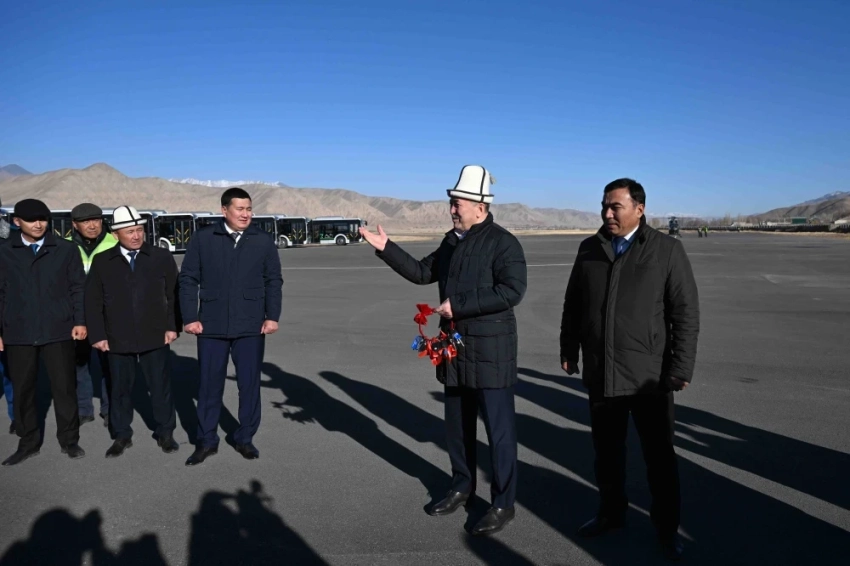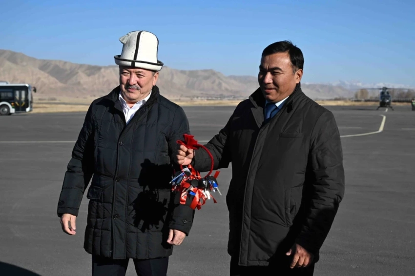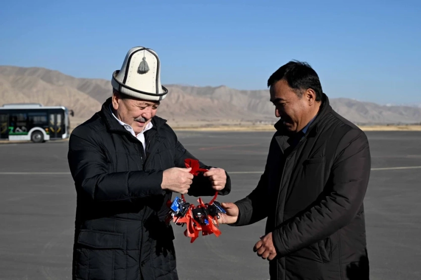 Премьер-министр Адылбек Касымалиев, находясь в рабочей поездке в Нарынской области, стал свидетелем церемонии передачи ключей от новых автобусов и спецтехники.