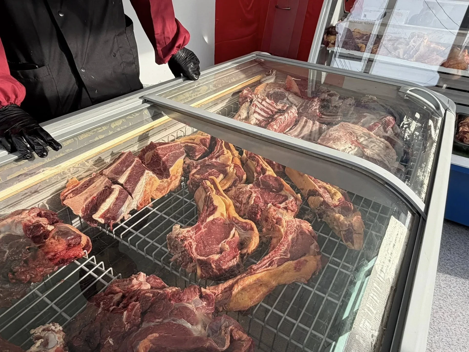 В ассортименте предлагается свежее мясо — говядина, конина и баранина, а также значительно сниженные цены. Цены на продукцию следующие: