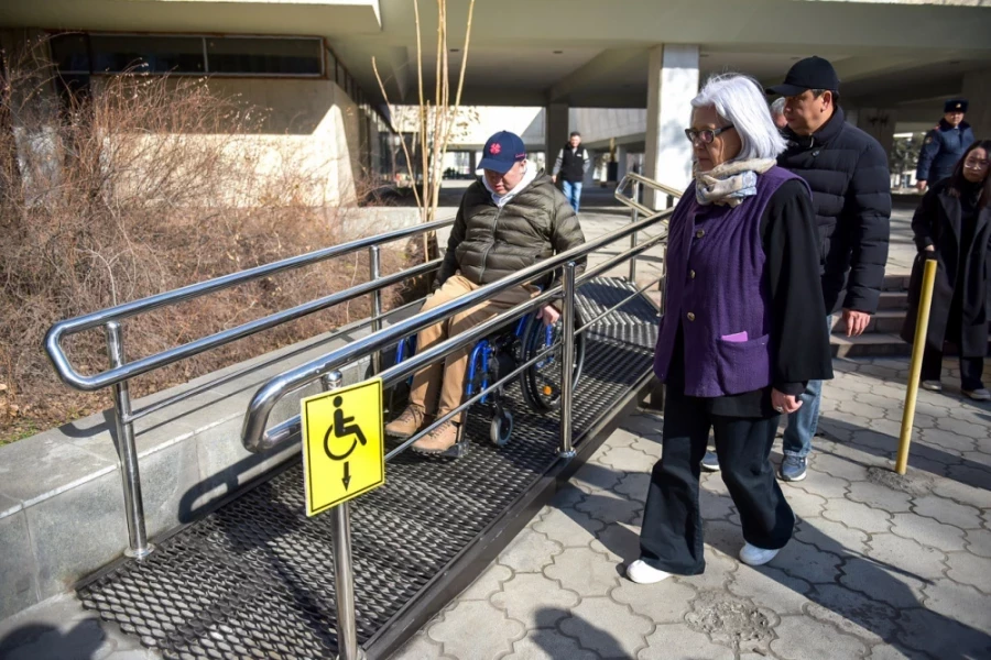 Т recently recently, мэр Айбек Джунушалиев жарандык коомду колдоо фондунун төрагасы Аскар Турдугулов менен биргеликте «Сейтек» Ишинин Улуттук борборунда жана Гапар Айтиеванын искусстволор музейинин жанында жайгашкан пандустарды текшеришти. Бул пандустар заманбап талаптарға жооп берет: алар коопсуздукту жакшыртуу үчүн колдонуучулар менен жабдылган, кулаш 8 градустан ашпайт жана металл бөлүктөрү коррозиядан корголгон.
