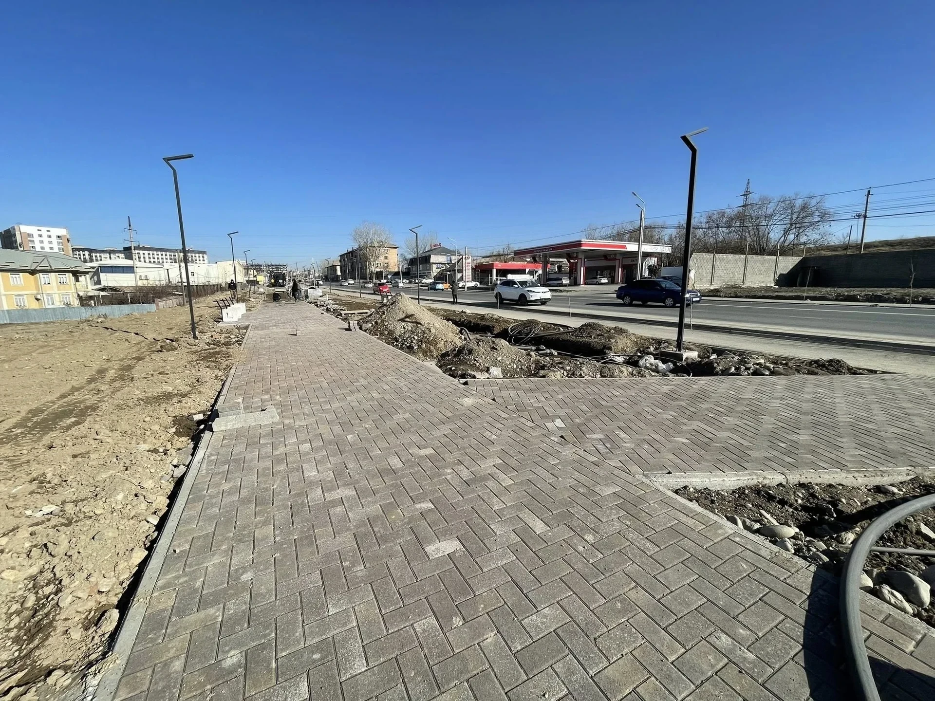 . На участке от торговой площадки «Касиет» до улицы Б. Осмонова, расположенной на улице Мамырова в Оше, начато строительство новой зоны отдыха.