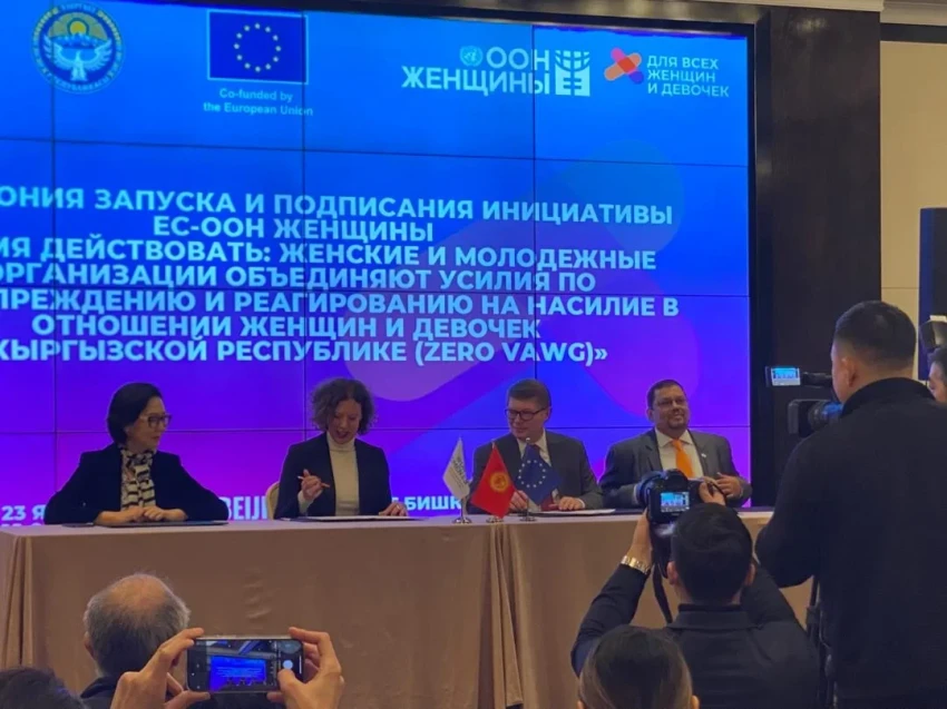 В Бишкеке состоялся официальный запуск инициативы Zero VAWG (Zero Violence Against Women and Girls), которая направлена на нулевую терпимость к насилию в отношении женщин и девочек. Этот проект реализуется при поддержке Европейского Союза и Структуры «ООН-женщины», с целью усиления национальных механизмов профилактики гендернообусловленного насилия в Кыргызстане.