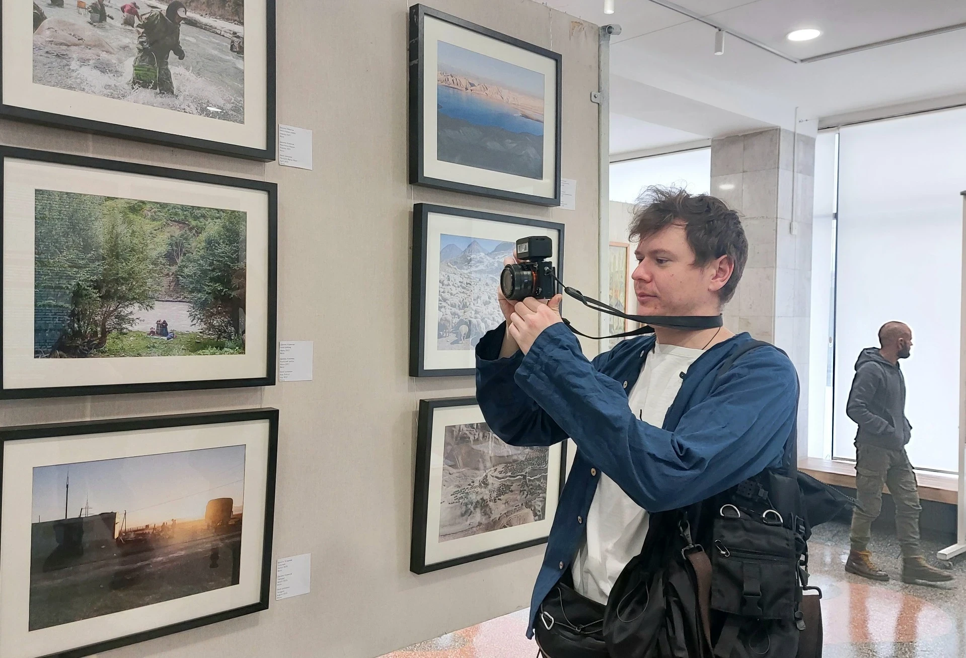 На выставке также представлены фотографии Токтогульского водохранилища, где уровень воды заметно снизился — это еще одно свидетельство климатических изменений. В отдельный блок выделена экологическая обстановка в столице, где кадры смога соседствуют с одной из самых насыщенных серий — изображениями городской свалки.