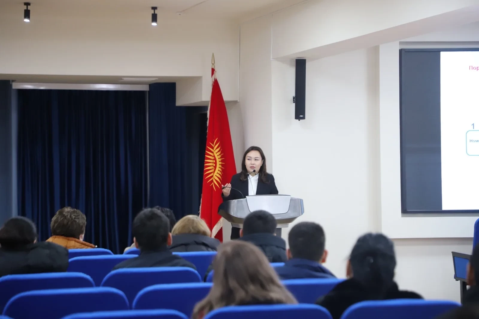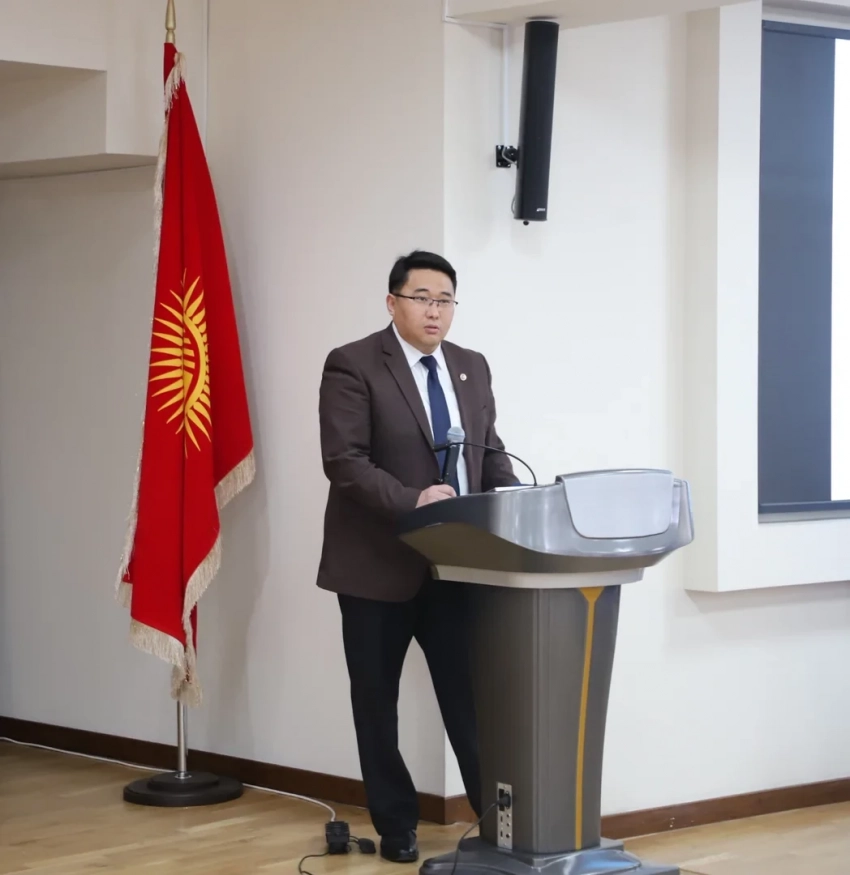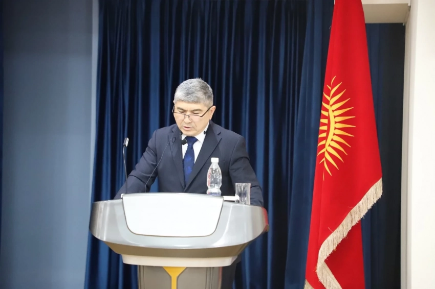 «Мамлекеттик сырларды коргоо чегинде заманбап чакырыктар жана коркунучтар» темасында генерал-майор Бокаев К.Н. чыгып сөз сүйлөдү, ГКНБ КР академиясынын начальниги.