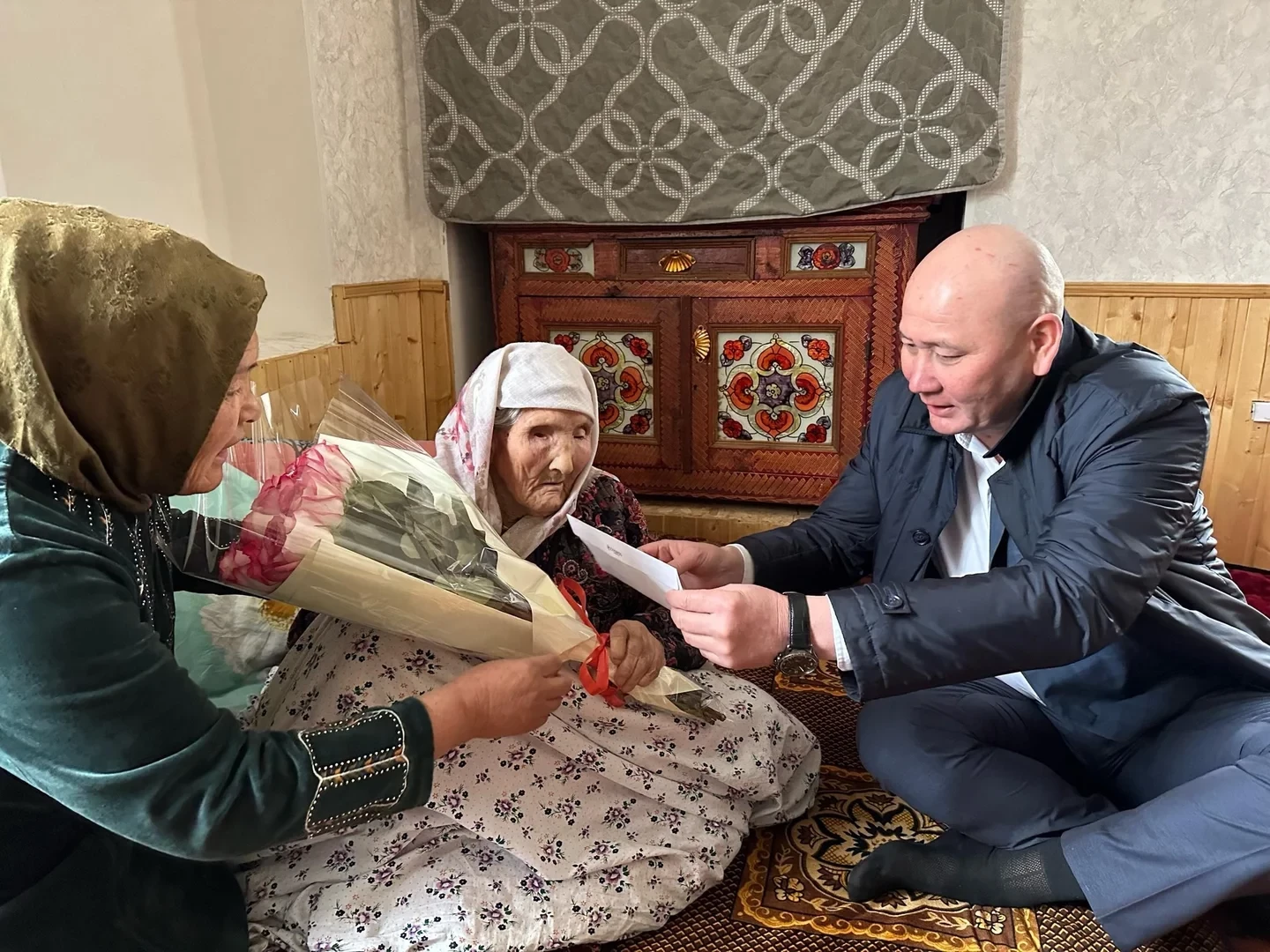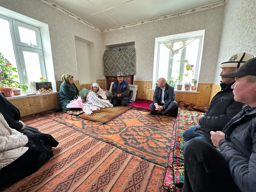 Баткен областында, аймактын башчысы Айбек Шаменов 100 жаштагы көп балалуу апа, Кок-Таш айылында белгиледи.