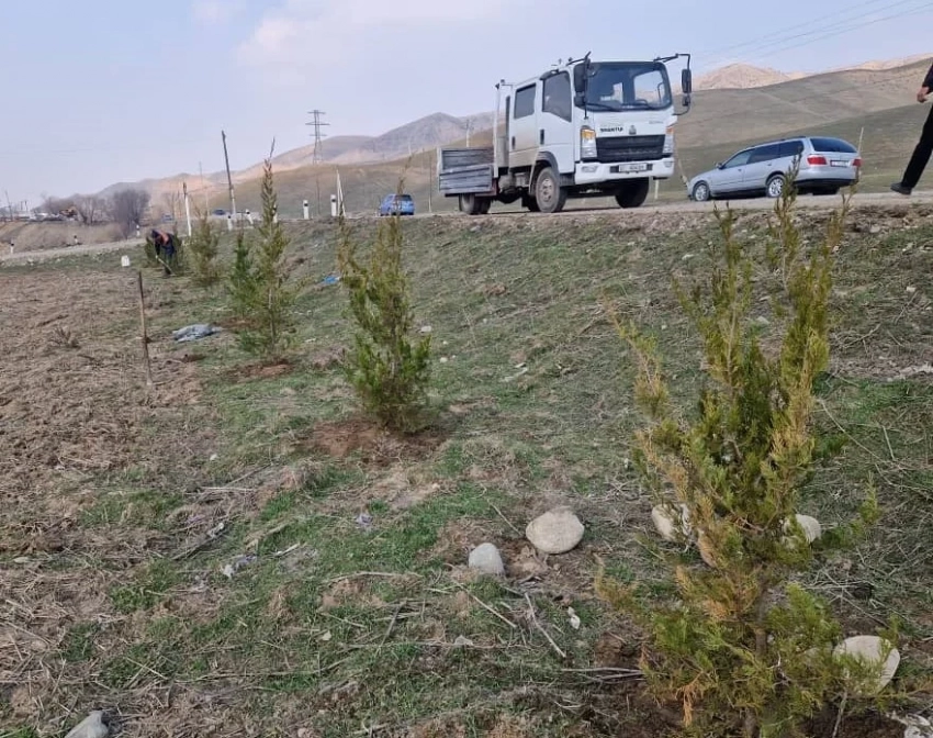 Ведомствонун маалыматына ылайык, көчөттөрдү отургузуу иштери Ош-Баткен-Раззаков жолунун 13-14-километрлеринде жүргүзүлүүдө, бул жерде 230 дарак отургузуу пландалууда.