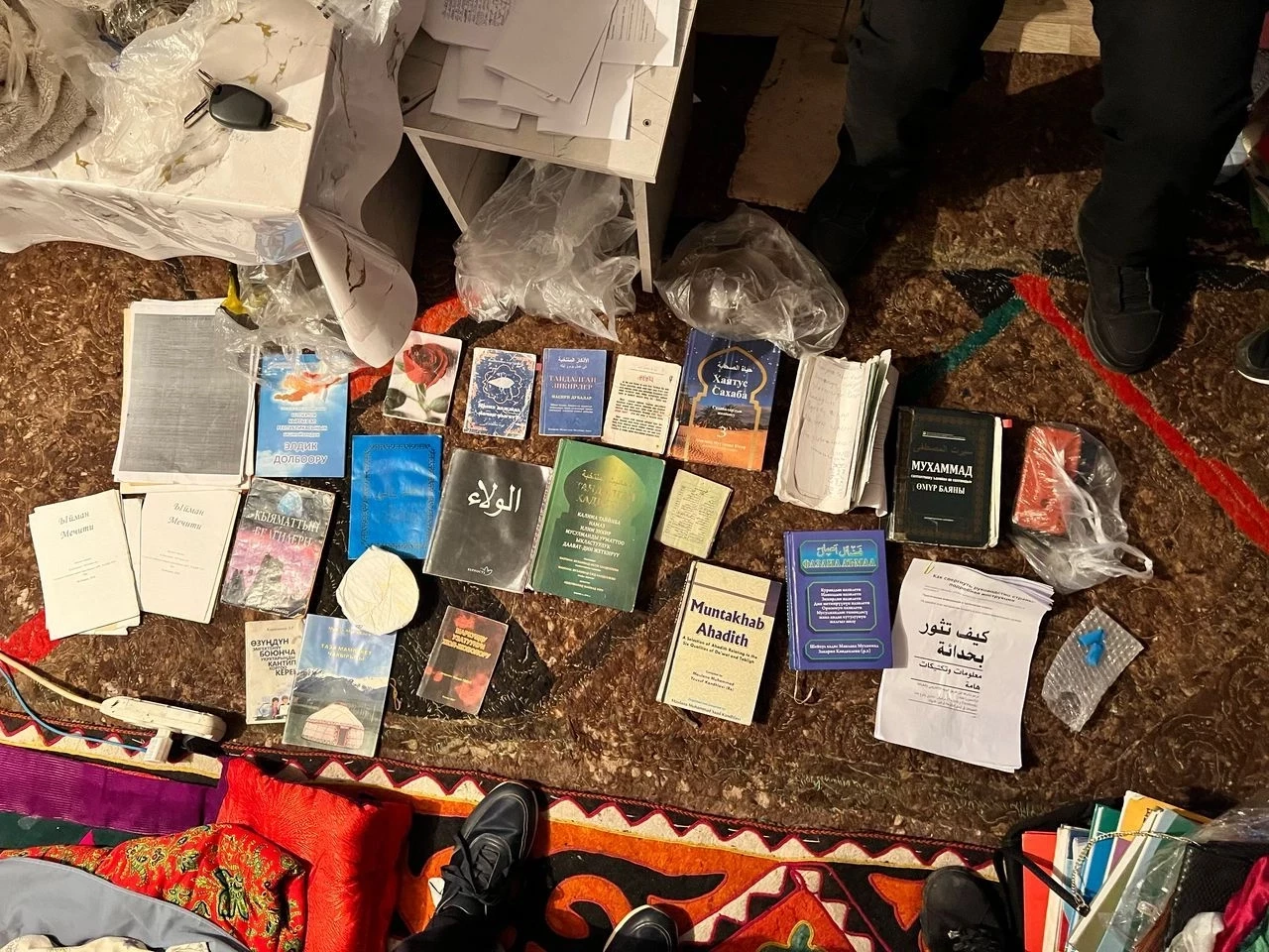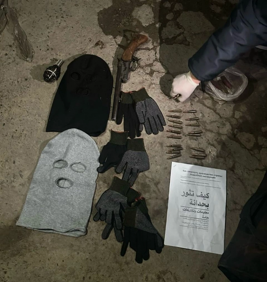 2025-жылдын 24-февралында Кыргыз Республикасынын Ички иштер министрлигинин Тергөө кызматынын кызматкерлери кармалган адамдардын жашаган дарегинде тинтүү жүргүзүштү. Бул иш-чаралардын жүрүшүндө: гранаталар, курал, ок-дарылар, камуфляж формасы, наркотиктер, динге байланыштуу китептер, маскалар, башаламандык уюштуруу боюнча инструкциялар, муздак курал, унаа номерлери, мобилдик телефондар, флеш-накопители жана башка буюмдар алынган.