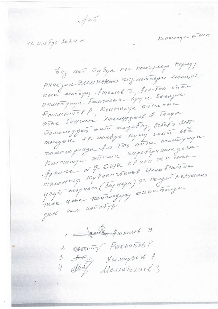 Рабочая группа сообщила, что по данному инциденту был составлен акт с участием заместителя главы айылного аймака Ала-Тоо, главы села Кенжекул и представителя Кара-Суйского РОВД.