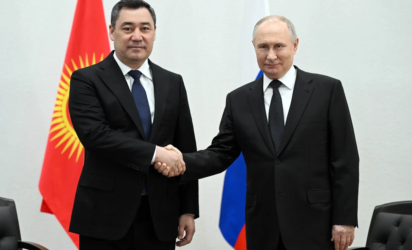 Президент Российской Федерации Владимир Путин прибыл в Кыргызстан с государственным визитом 25 ноября. На международном аэропорту «Манас» его приветствовал президент Кыргызстана Садыр Жапаров.