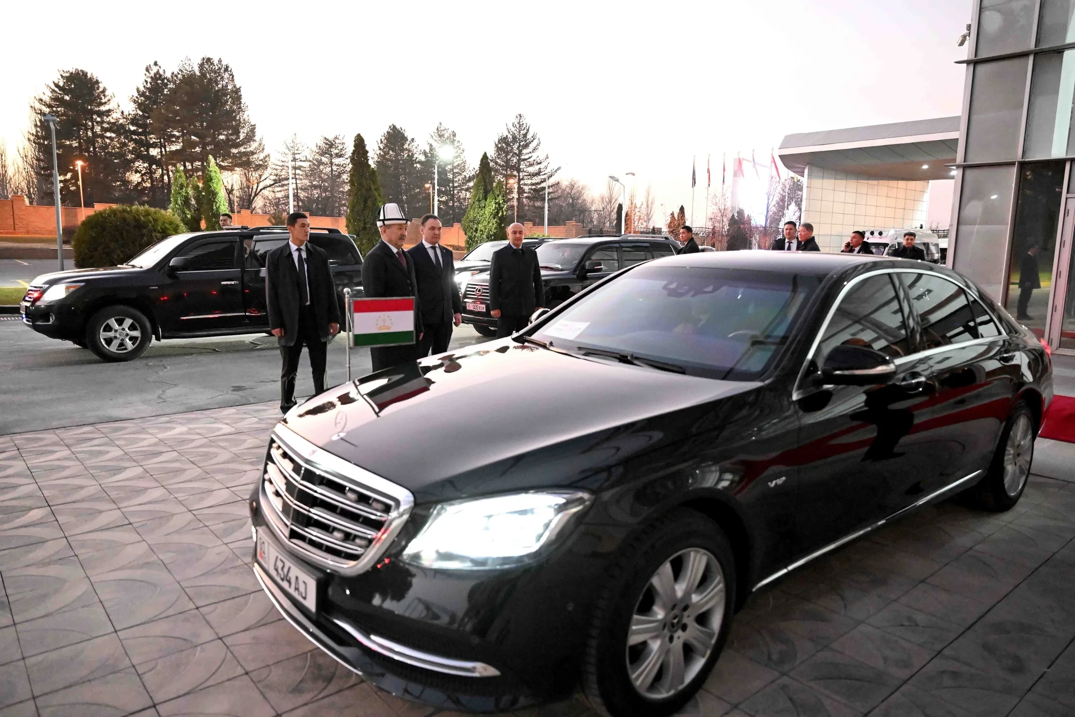 На международном аэропорту «Манас» высокопоставленного гостя встретил председатель кабинета министров и руководитель администрации президента Кыргызской Республики, Адылбек Касымалиев.