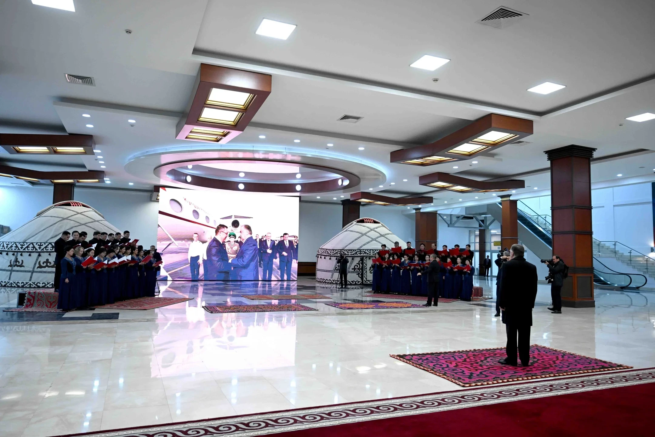 Перед президентом разостлали ковровую дорожку и выстроили роту Почетного караула. Также была представлена небольшая концертная программа.