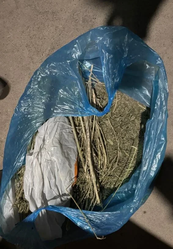 При обыске в доме задержанного были найдены два пакета с коричневым веществом, обладающим характерным запахом конопли, весом 138 и 102 грамма; самодельная трубка для курения, пластиковая бутылка, самодельный пистолет, обрез, граната, восемь патронов, один патрон, одна гильза и коробка с порохом; два ножа.