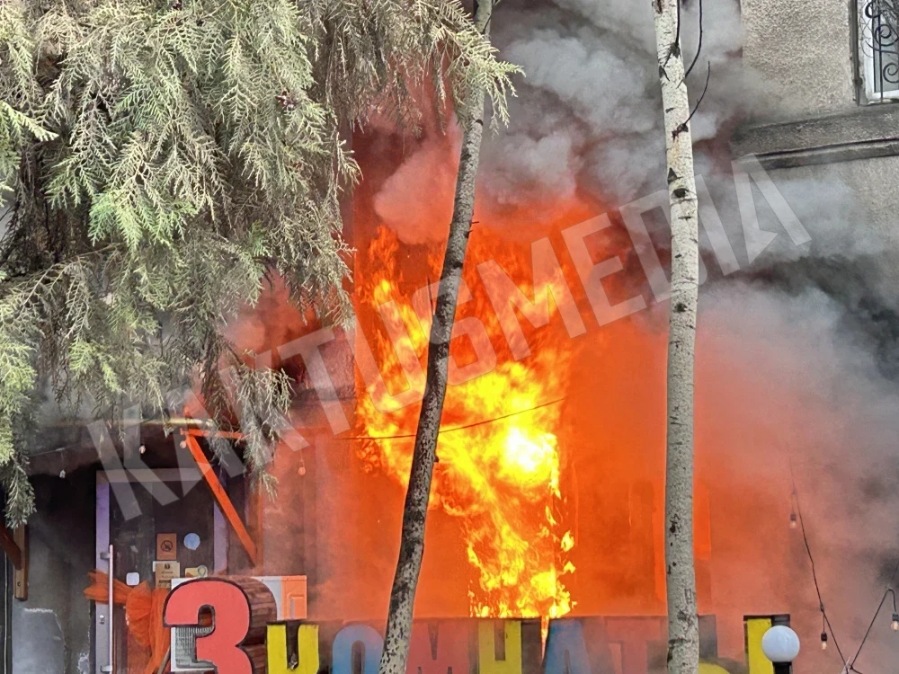 На пр. Эркиндик горит известное кафе. Фото и видео