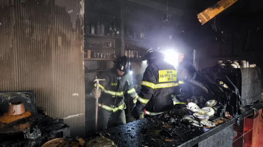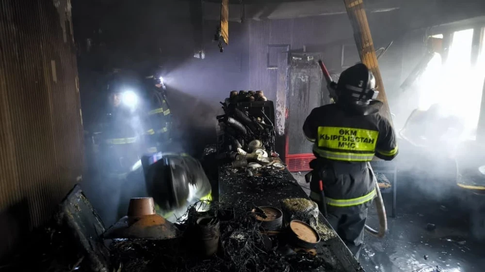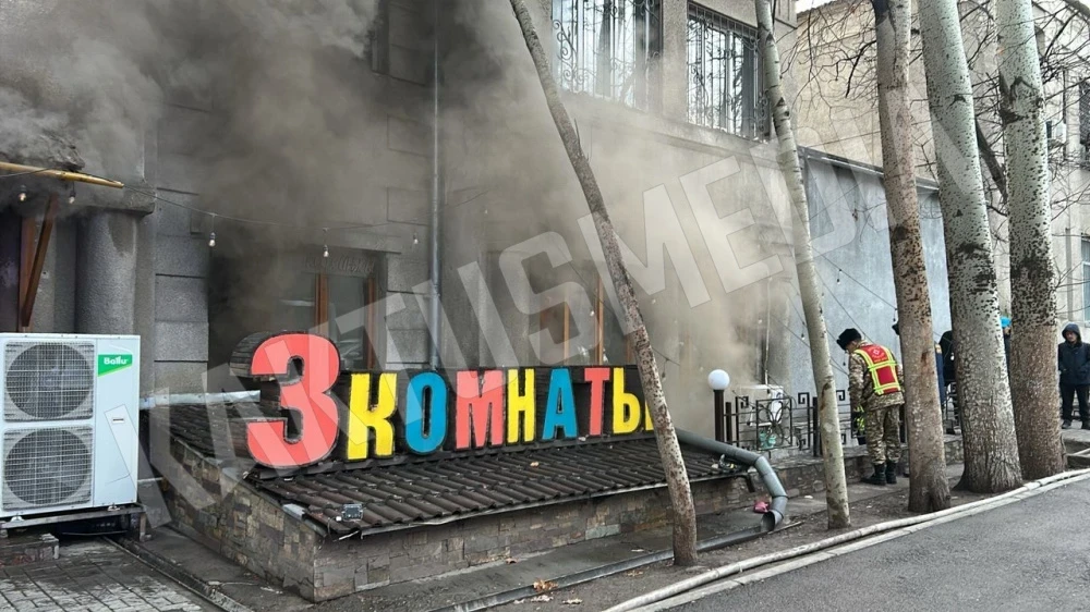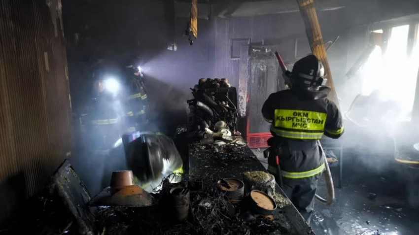 Согласно предварительным данным, возгорание возникло в кафе "3 комнаты", расположенном между улицами Московская и Токтогул на проспекте Эркиндик. Пламя охватило подвальное помещение и первый этаж здания.