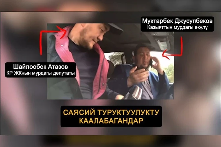 На официальном релизе МВД указано, что задержанный Мухтарбек Джусупбеков ранее работал в казыяте. На одной из фотографий он запечатлен в автомобиле с экс-депутатом ЖК Шайлообеком Атазовым.