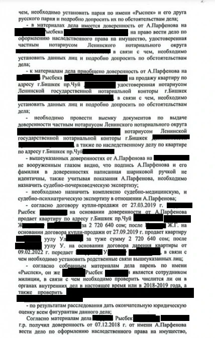 Уже на следующий день, 27 марта 2019 года, по доверенности в Бишкекском управлении "Кадастр" был оформлен договор купли-продажи квартиры на имя брата Рысбека, Жунусбека.