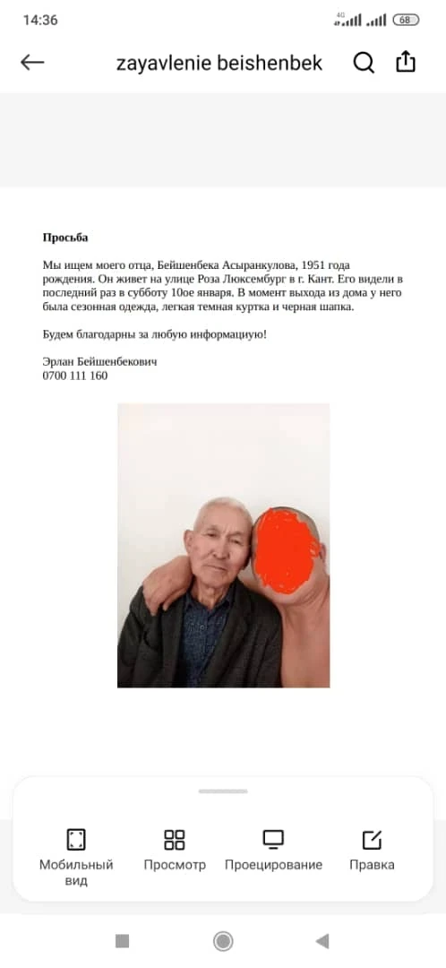 Правоохранительные органы призывают всех, у кого есть информация о местонахождении Бейшенбека Асыранкулова, немедленно сообщить в ОВД Иссык-Атинского района.