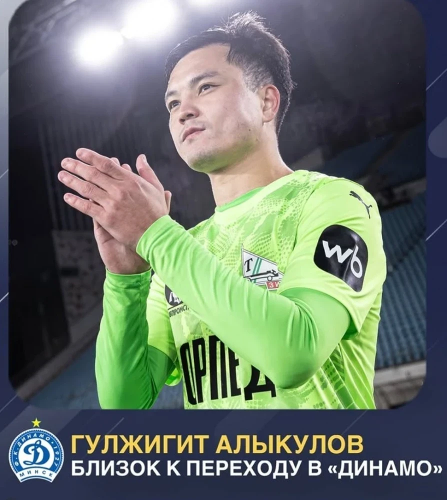 Согласно информации от известного футбольного эксперта Сергея Ильёва, полузащитник сборной Кыргызстана Гулжигит Алыкулов находится на финальной стадии переговоров с минским "Динамо".