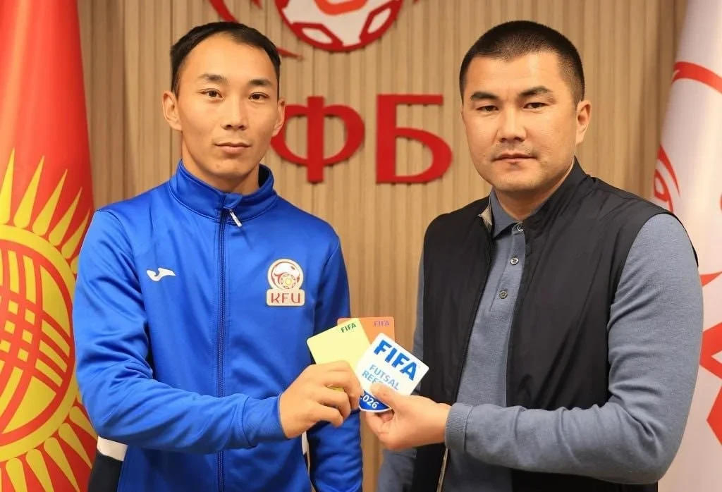 Важное событие произошло в мире футзала Кыргызстана: Генеральный секретарь Кыргызского футбольного союза, Медербек Сыдыков, вручил международные лицензии ФИФА на 2026 год двум арбитрам — Талантy Раимбердиеву и Нурбеку Арстанбек уулу.
