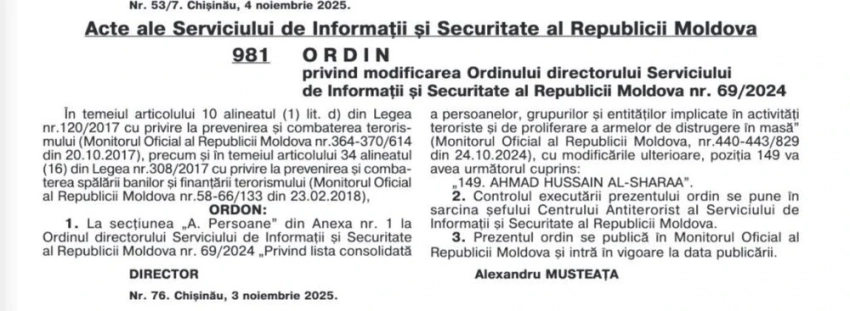 СИБ Молдавии внесла временного президента Сирии в список террористов